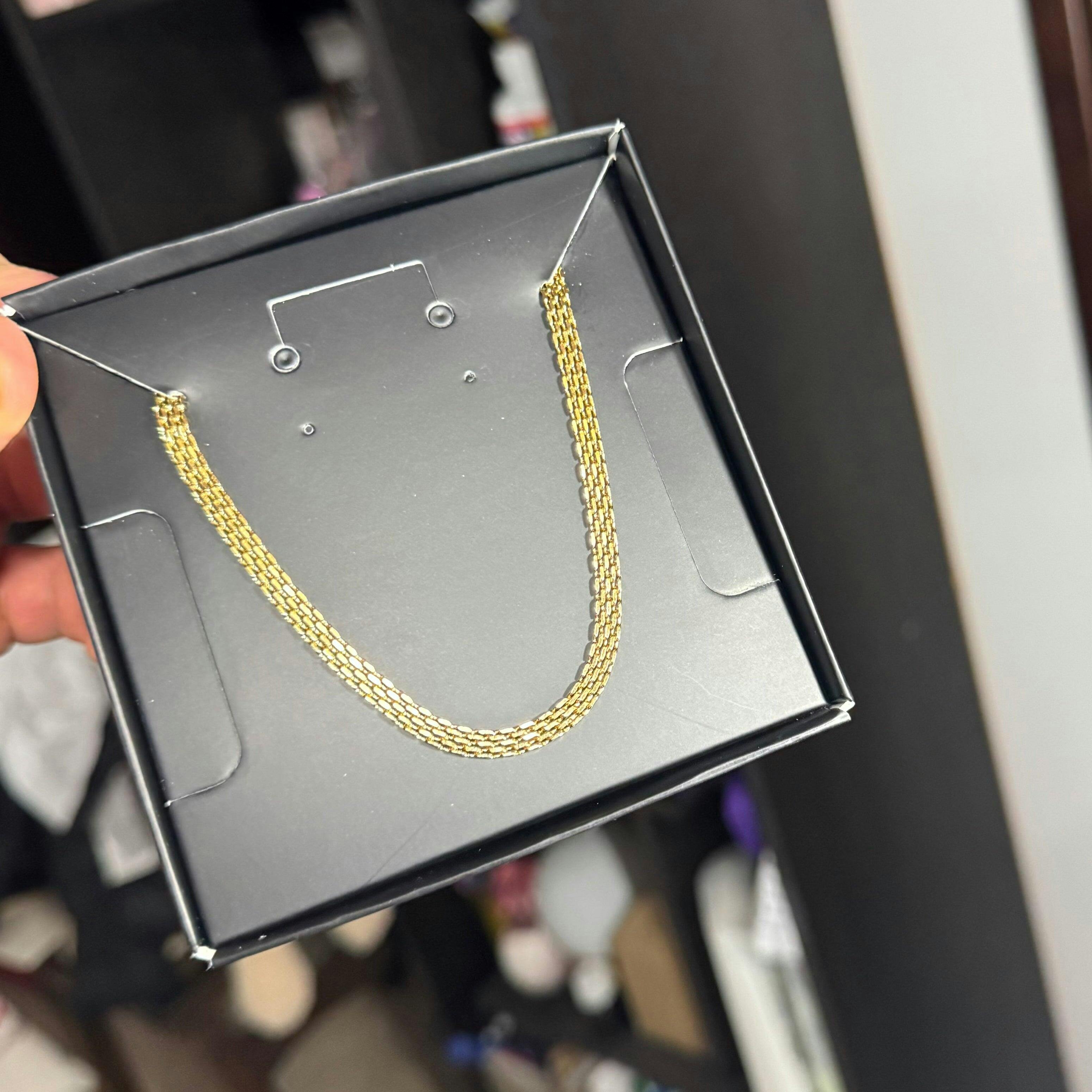 Cadena Chinesca en Oro Laminado Italiano 18K, diseño distintivo de eslabones entrelazados con brillo duradero que no pierde el color, elegante y con mucha personalidad. 💛